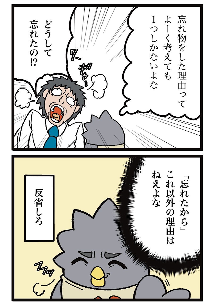 オレが忘れ物をする理由 2023年12月07日 23:00 ▽前のマンガはこちら▽ <オレが忘れ物をする理由>「どうして忘れたかわかるか?」というテンプレ説教には「僕の不注意と意識の欠如が原因です」と返答していました。☆次のマンガはこちら☆ □最初から読む■□関連マンガはこちら■次回更新□Instagramでも更新中■ □最新マンガはLINE登録■▲タップして登録△ □BOOTHでグッズ販売中■ 「日常マンガログ」カテゴリの最新記事 < 前の記事次の記事 > コメント コメントフォーム 名前 コメント 記事の評価 リセット リセット 顔 星 情報を記憶 コメントを投稿する