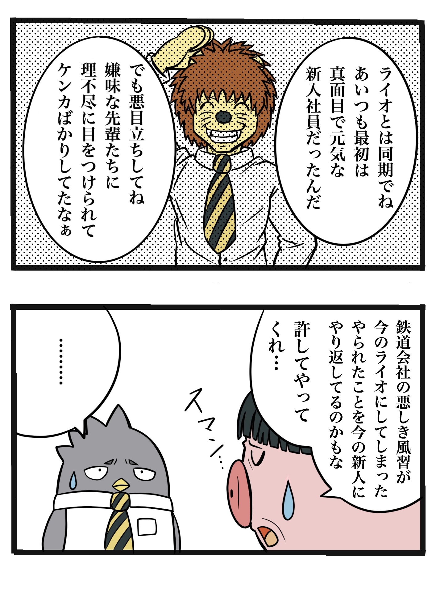 100日後に辞める駅員さん 82日目 2021年05月04日 18:15 〈元駅員一言メモ〉まじでこういう人がいました。会社が手に負えない人です。でもまぁ僕にはよくしてくれてたのでなんの問題もなかったですw裁判沙汰とかも普通にあったそうですよ □次のマンガはこちら■ □第1話はこちら■ □関連マンガはこちら■ □最新マンガはLINE登録■ 「100日後に辞める駅員さん〈第1部〉」カテゴリの最新記事 < 前の記事次の記事 > コメント コメントフォーム 名前 コメント 記事の評価 リセット リセット 顔 星 情報を記憶 コメントを投稿する